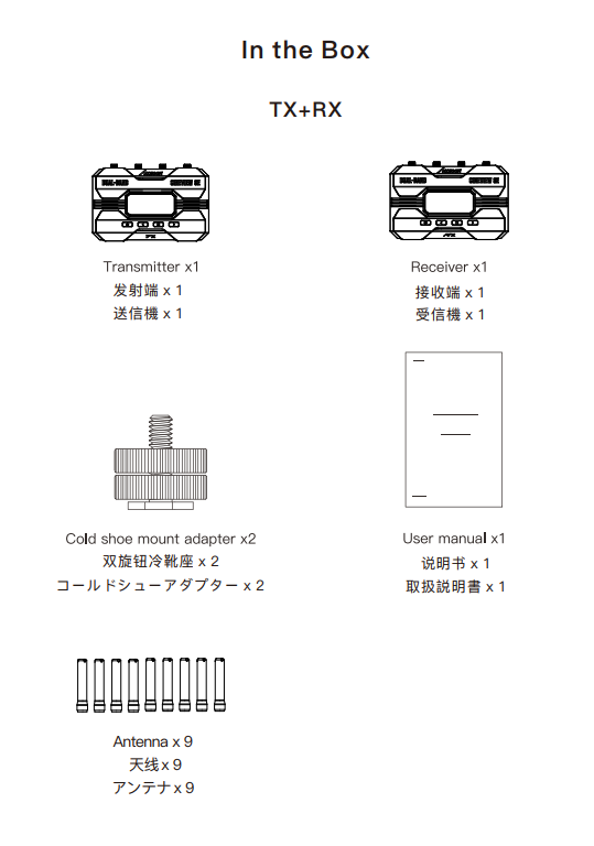 – Cũng giống như các mẫu CineView khác, thiết bị phát CineView SE (trên đầu một thiết bị RX) có thể được sử dụng với tối đa bốn thiết bị nhận khác – thiết bị CineView RX (tổng số tối đa là 4), thiết bị iOS hoặc Android chạy ứng dụng Accsoon Go, hoặc bất kỳ sự kết hợp nào của hai loại thiết bị đó.