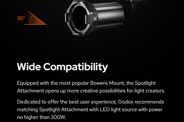 Bộ tạo hiệu ứng Spotlight Godox VSA-36 K được hãng godox sản xuất phù hợp nhiều dòng led công suât từ 60w-300w . Bộ tạo hiệu ứng Spotlight Godox VSA-36 K mang lại trải nghiệm tuyệt vời về chiếu sáng cho mọi nhiếp ảnh gia và dựng phim chuyên nghiệp.